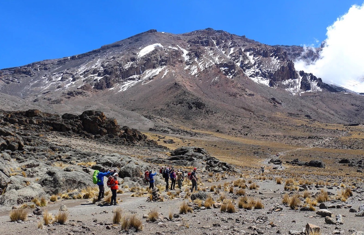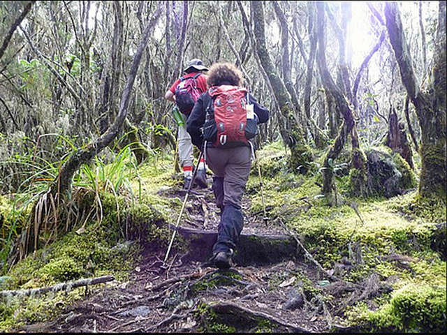 Climbing Mount Kilimanjaro is a virtual climatic world tour, from the tropical rain forest on the lower slopes and alpine heath, to an almost bare alpine desert and finally the wintry Arctic summit of snow and ice, just 3 degrees south of the Equator.